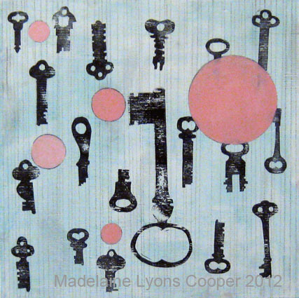 Ten new panels are currently available at Elephant Shoes, 1342 Bloor St. W. Toronto, parts of the Constellation Series and Key Series. Both were created using print and painting techniques, exploring the spaces between the two media.