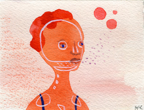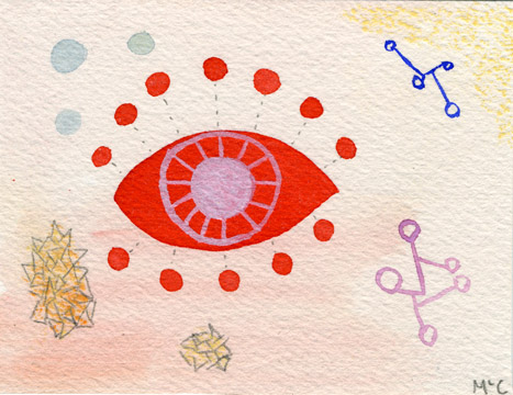 Flapper Ghost, 2013. 4″ x 3″. Watercolour, graphite and conte crayon on Arches 140lb cold press.R.I.P.L.S.P. 2013. 3″ x 4″. Watercolour, graphite and conte crayon on Arches 140lb cold press.Elemental Eye, 2013. 4″ x 3″. Watercolour, graphite and conte crayon on Arches 140lb cold press.