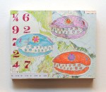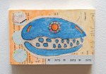 Intaglio, watercolour, collage and vintage brass tacks on wooden panel